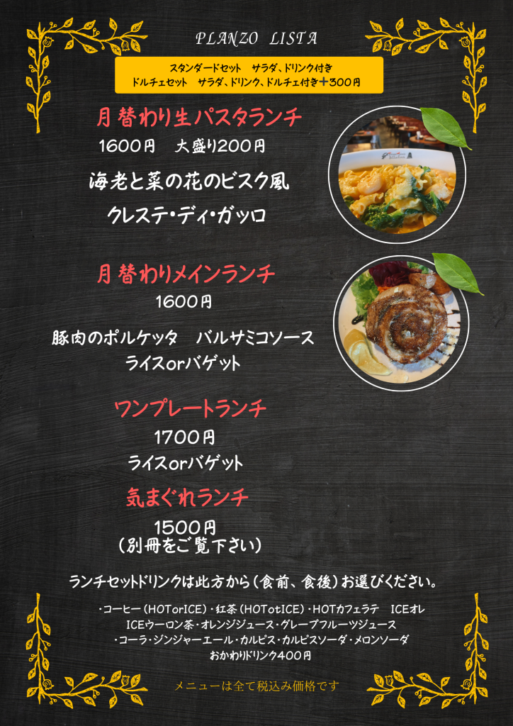 ※ランチメニューは、月の前半・後半で変ります。