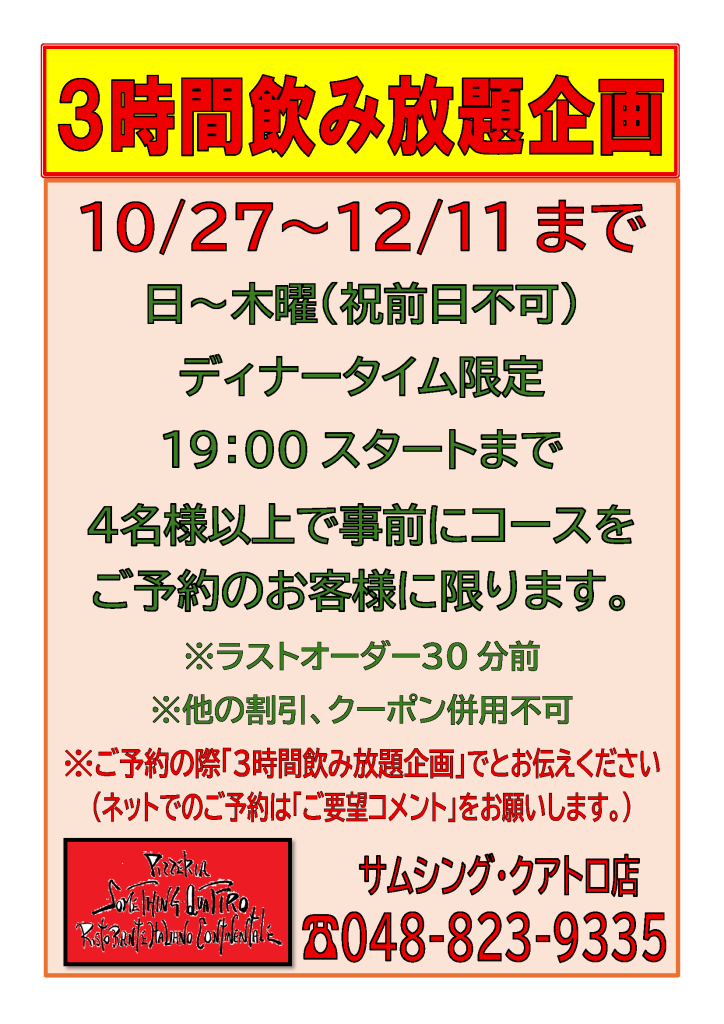 サムシングクアトロのパーティーメニューページ